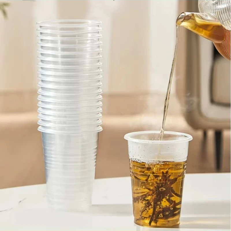 100PCS Disposable Transparent Plastic Cups Household Transparent Drinking Cups Outdoor Picnic Birthday Kitchen Party Utensils